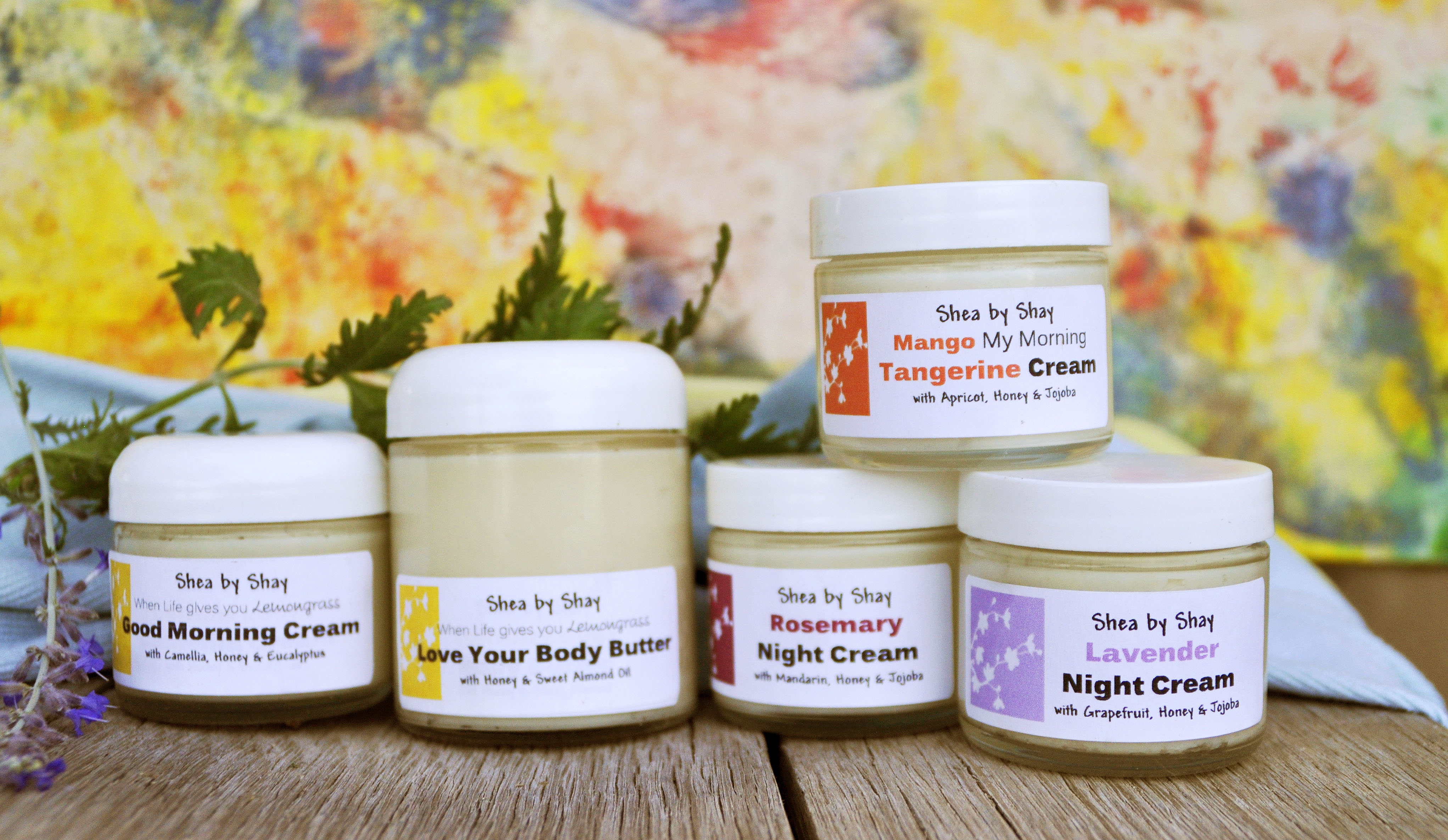 Buying each ingredient and using them on my skin convinced me to experiment with making my own creams. If Shea butter has had such an amazing effect by itself, then what will it do if I mix it with Jojoba? What about citrus? What about raw honey? And it was then that I discovered the triple threat to so many of my personal skin care problems. One day I mixed my Shea butter with Jojoba, Apricot Kernel Seed Oil and Grape Seed Oil. My night cream was born, and my skin has never been the same, thankfully. I use these two creams every single evening, rotating back and forth between the Rosemary and the Lavender. The ingredients are of the highest grade, cold pressed organic oils, and I mix each batch, every single jar, myself.